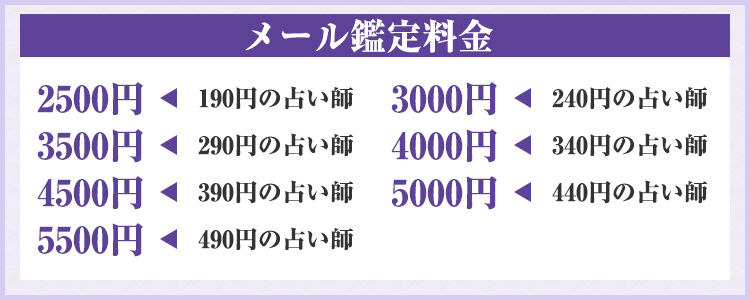 占い師によって料金が違い、190円から490円まで7つの料金帯があります。